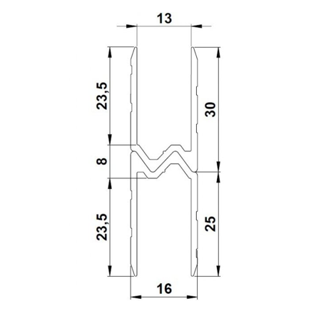 Aluminiowy profil hybrydowy do płyty o grubości 13 mm