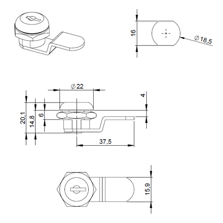 Zamek cylindryczny do szuflad metalowych