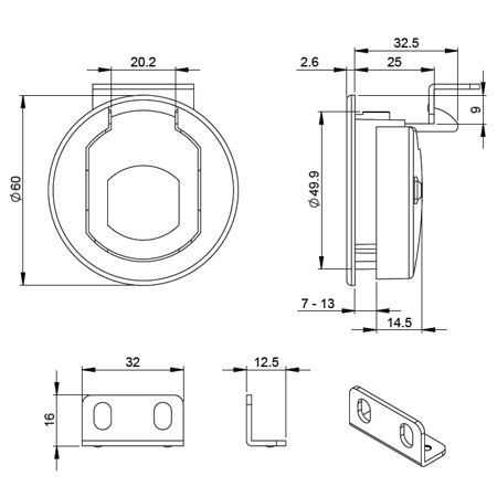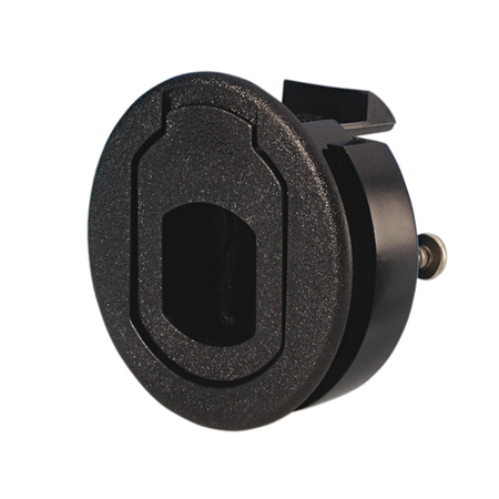 Płaski zamek dźwigniowy z czarnego tworzywa sztucznego do montażu na płycie o grubości od 7–13 mm, śruby ze stali nierdzewnej