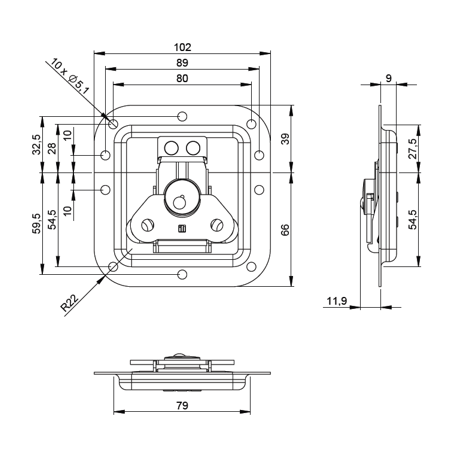 - Otwory montażowe: Ø 5,1 mm