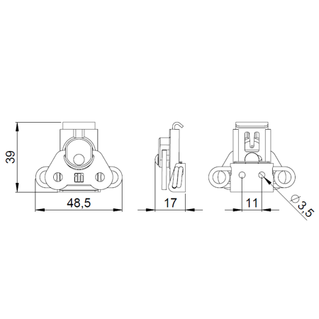 Zamek motylkowy mały bez obudowy, bez zaczepu