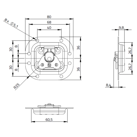 Zamek motylkowy mały w miseczce o gł. 9,8 mm czarny