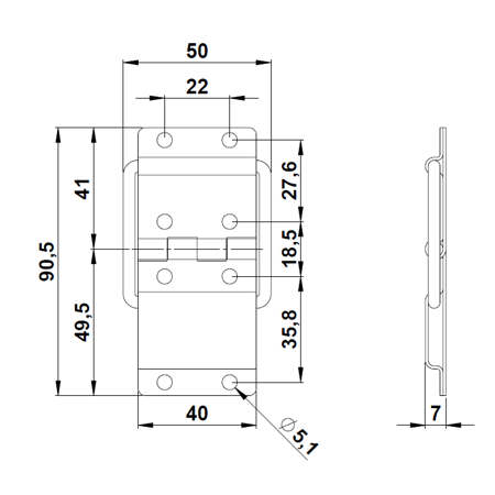 - Otwory montażowe: Ø 5,1 mm