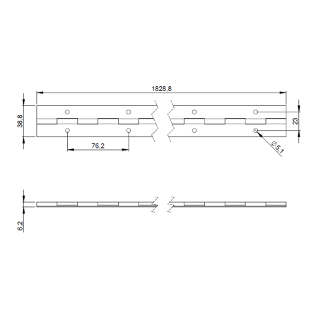 Zawias taśmowy długi z otworami w odstępach 76 mm