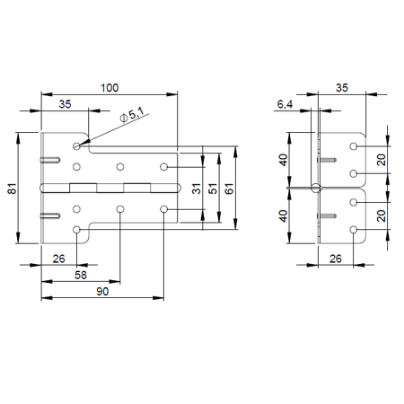 Kombinacja dwóch klamr 40403 i zawiasu taśmowego 2606